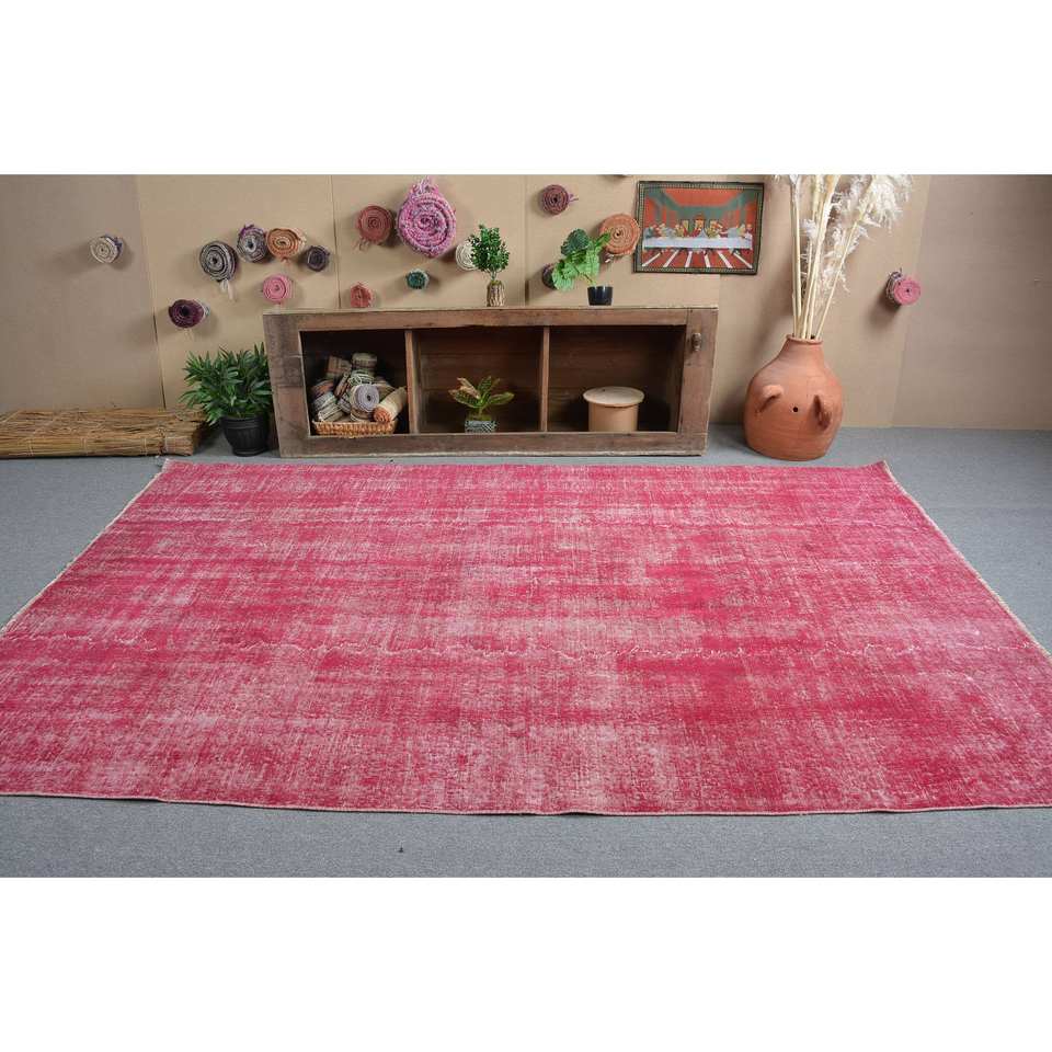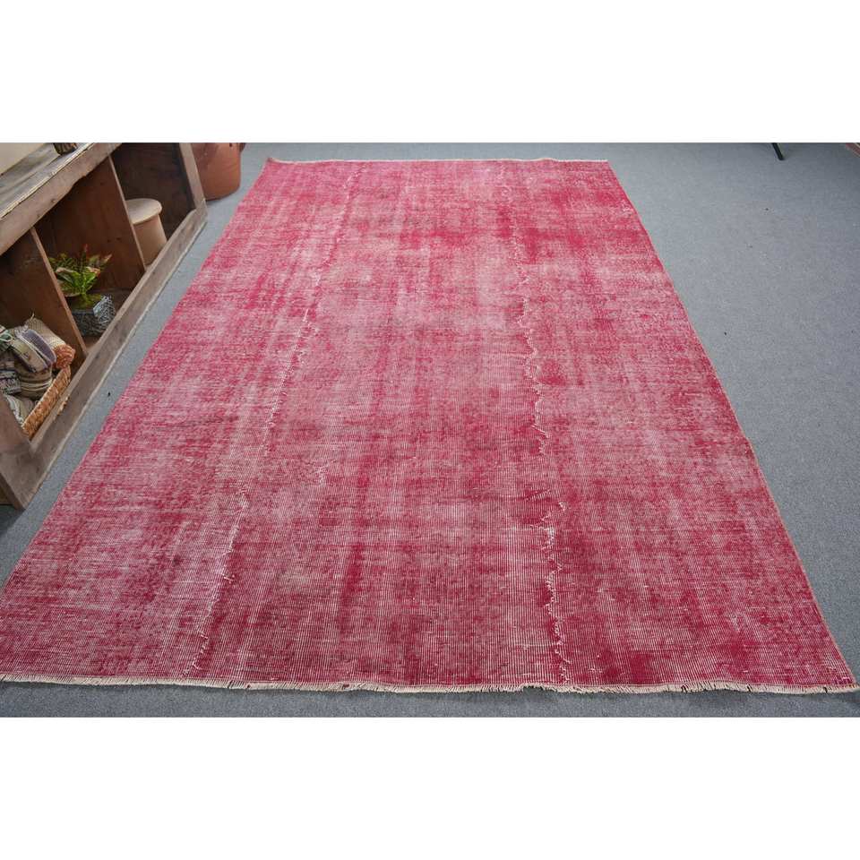Alfombra Turca Moderna y Tradicional, Ecológica, de Pelo Medio, Gran Tamaño 6.2 x 9.8 pies, Diseño de Patchwork Rojo, Material de Lana, Base de Látex
