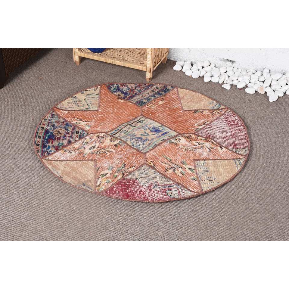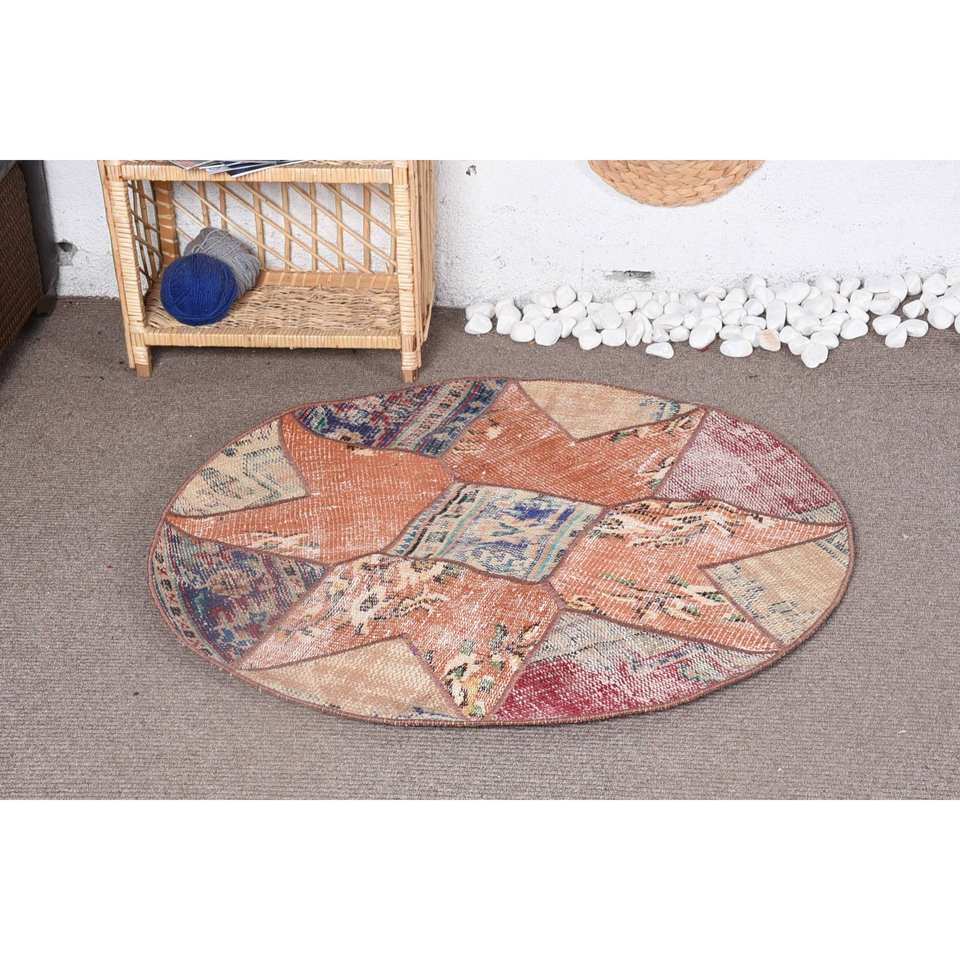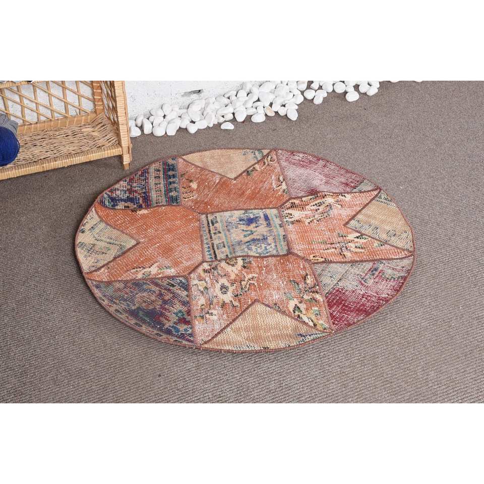 Alfombra de lana turca Vintage moderna 3,4X3,3 pies naranja-Beige diseño de retazos respaldo de látex para decoración para sala de estar para adolescentes