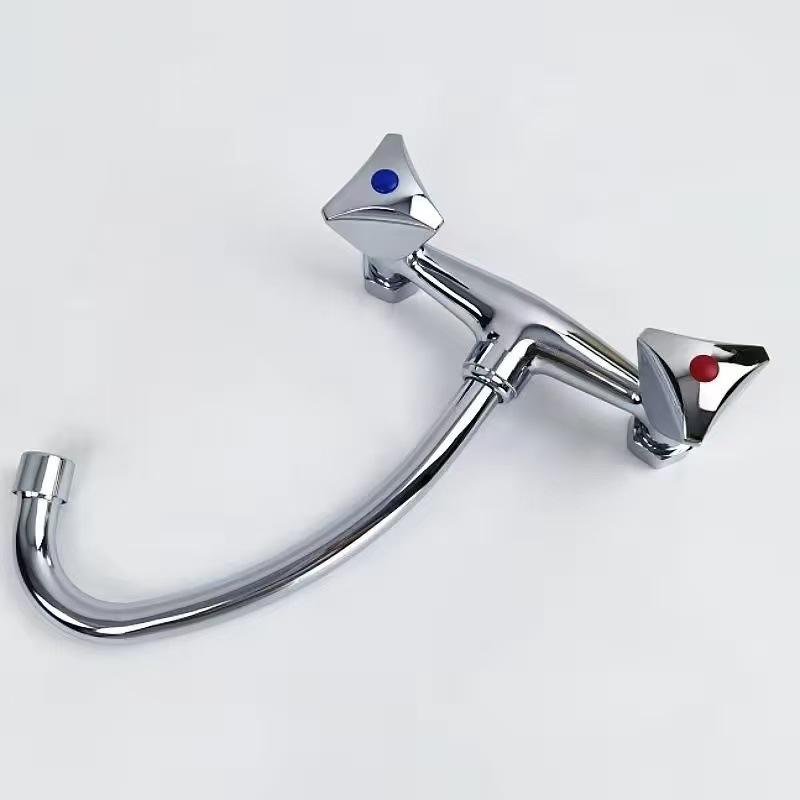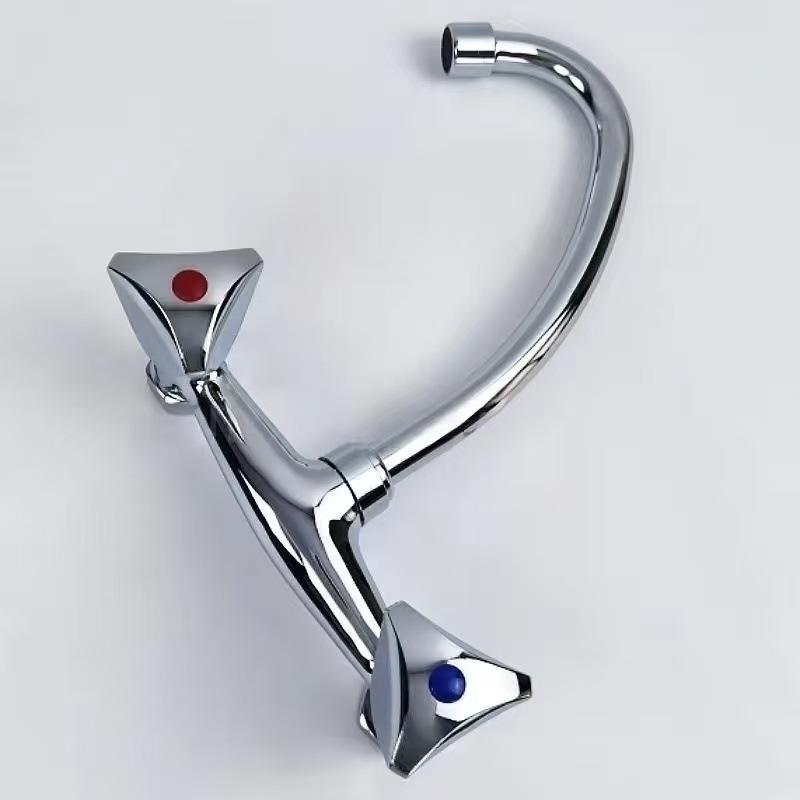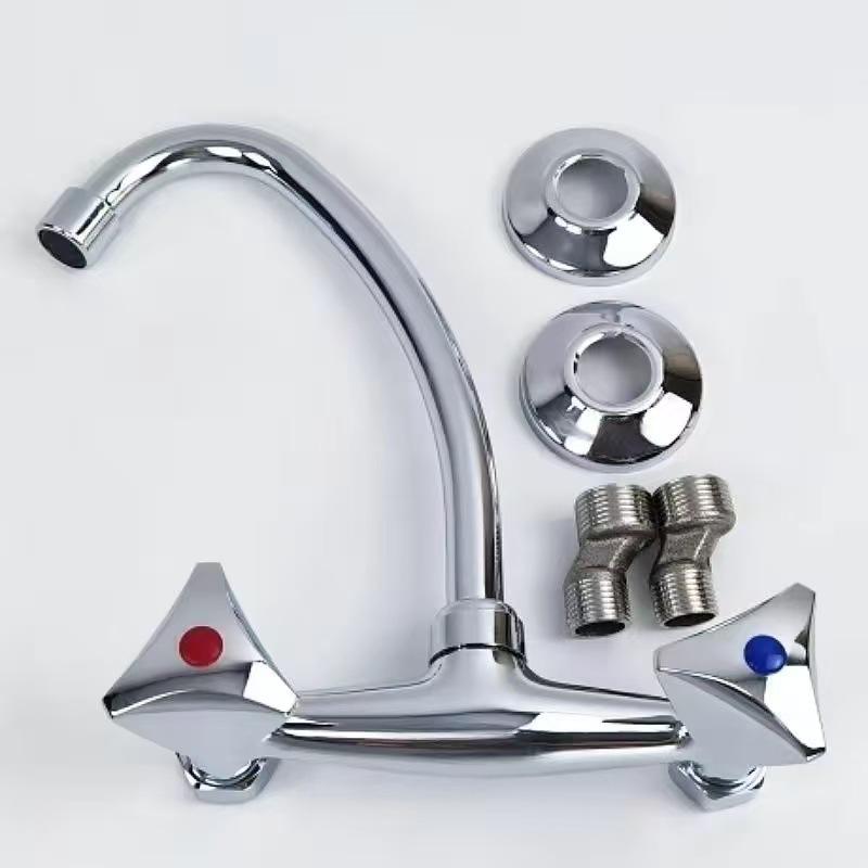 Grifo de Cocina Moderno de Pared con 2 Manijas, Válvula de Cerámica, Fácil Instalación, Diseño de Lámina Plana, 1.0-1.9 gal/m