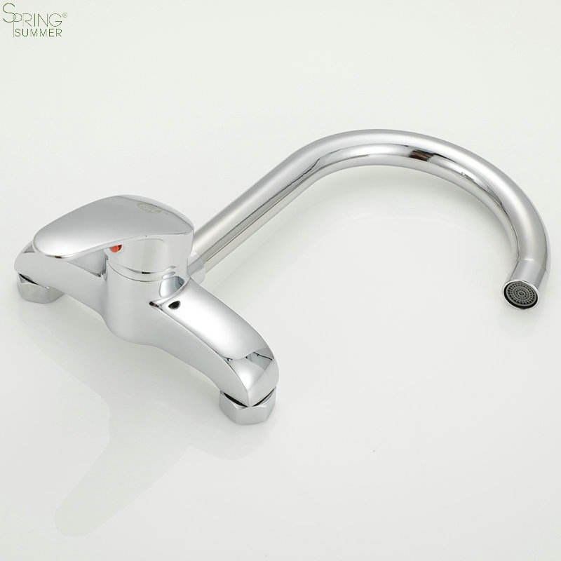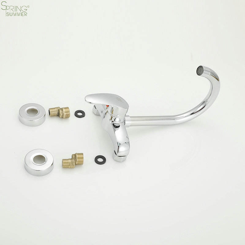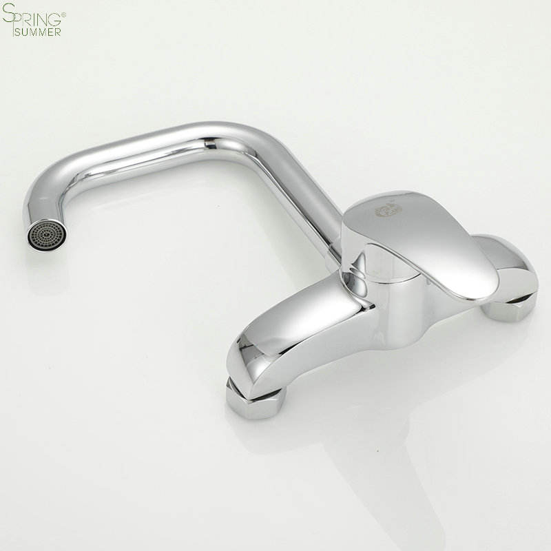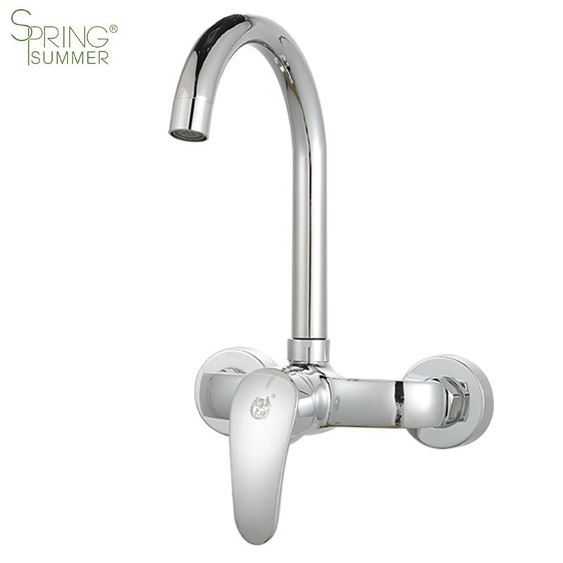 Grifos mezcladores de cocina modernos montados en la pared S21 Grifos de fregadero de latón con caño giratorio de 360 grados Pulverizador frío y caliente