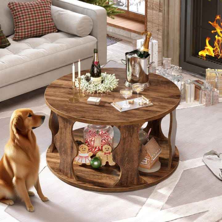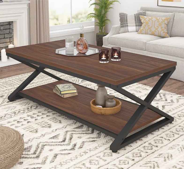 Mesa de Centro Moderna de Nogal con Estante de Almacenamiento | Mesa de Centro Rectangular de Madera para Sala de Estar | Mesa de Sofá de 2 Niveles