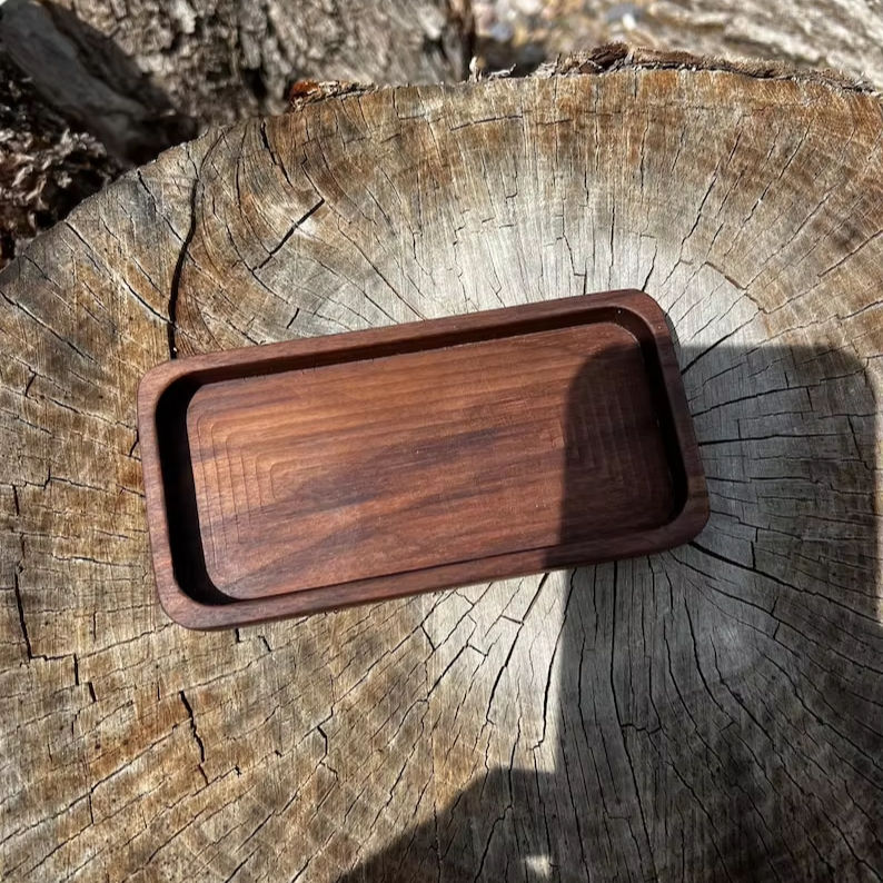 Mini bandeja moderna de nogal para jabonera de cocina, organizador de escritorio, bandeja de joyería de madera