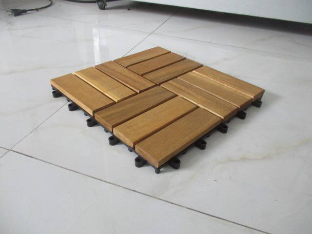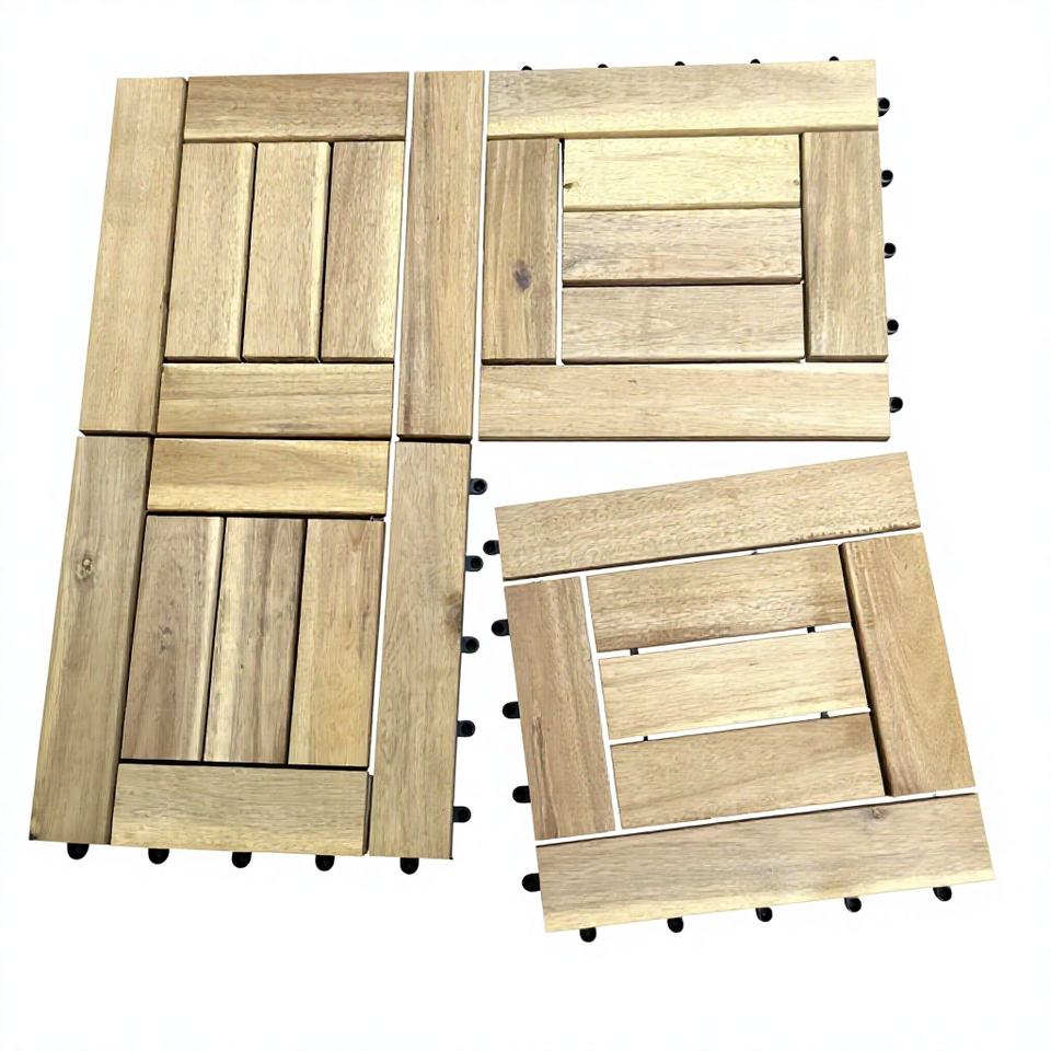 Tarima de Madera de Acacia Cuadrada con Sistema de Bloqueo DUAL LOCK, Impermeable, Moderna, 300x300mm, Acabado Mate, 2 Años de Garantía, Diseño de Modelo 3D
