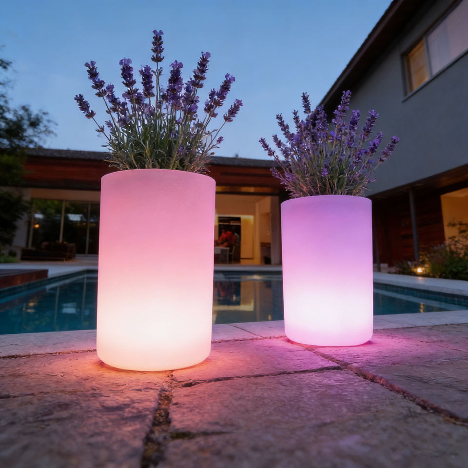 Maceta Moderna Impermeable con Luz LED, Maceta Pequeña para Jardín, Hogar, Escritorio, Duradera, Recubierta y Plateada, para Colgar en Casa