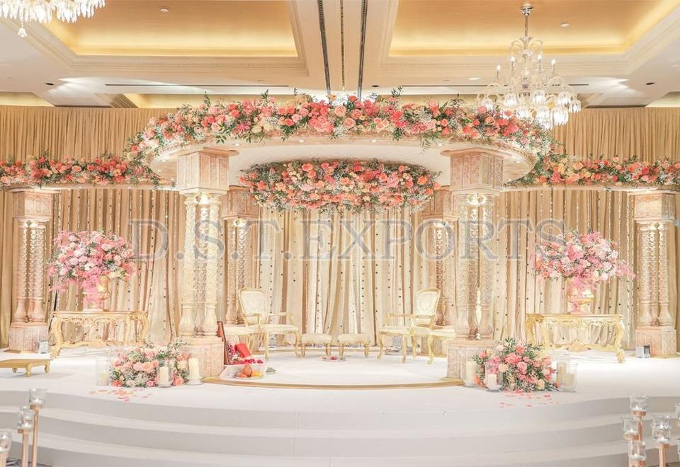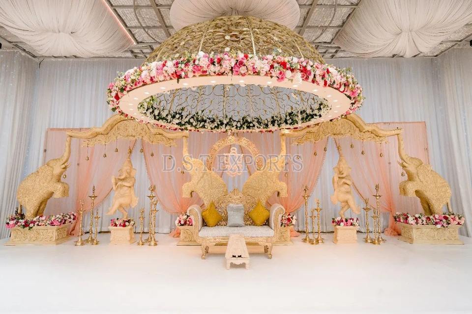 Mandap de Fibra Redonda Moderno para Bodas, Mandap para Celebraciones de Matrimonio del Sur de la India, Mandap Dorado Indio con Corona, Carolina del Sur