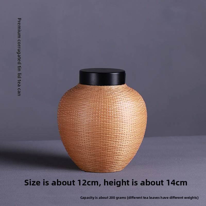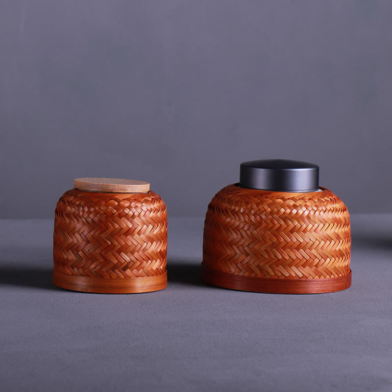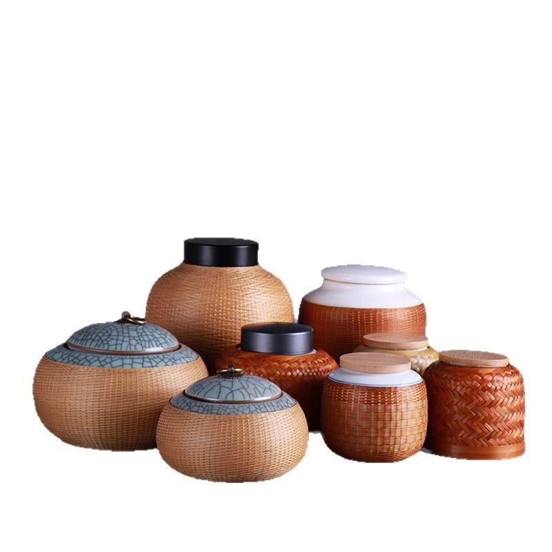 Bote de té de caña de bambú blanco moderno Tejido de seda fina Cuerpo de porcelana Artesanía Jarrón de tarro de té mate-Patrimonio cultural inmaterial