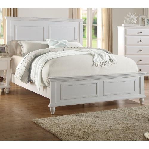 Cama Moderna Blanca Tamaño Queen/King con Cabecero y Pie de Cama Altos, Estructura de Madera Contrachapada para Dormitorio