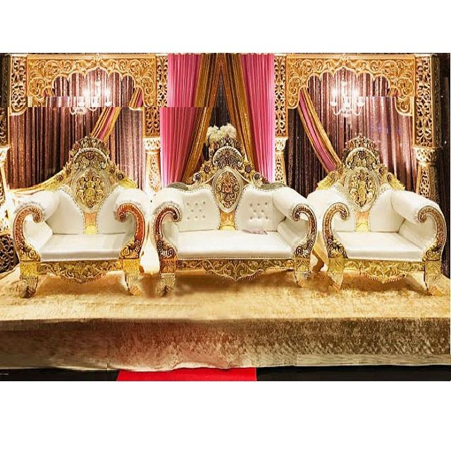 Juego de sofá moderno con trono de oro blanco para bodas, muebles para eventos Maharaja y Maharani
