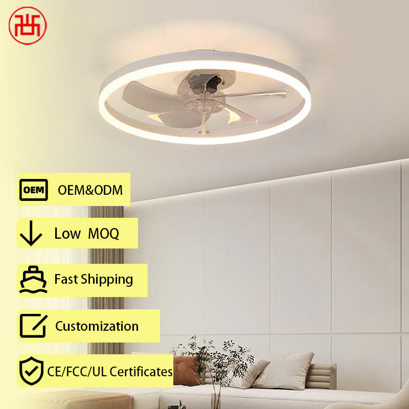 Ventilador de Techo Moderno con Luz LED Blanca, Perfil Bajo, 6 Velocidades, 5 Aspas, Motor Silencioso de CC, Atenuación Continua Inteligente, para Exteriores y Hoteles