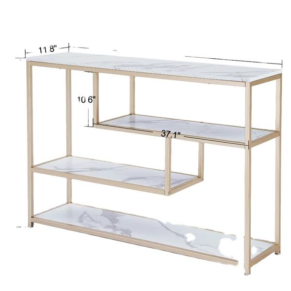 Mesa de consola de varios niveles de mármol blanco moderno, marco de hierro recubierto de oro, parte superior de Metal, diseño europeo moderno, muebles para el hogar y la sala de estar