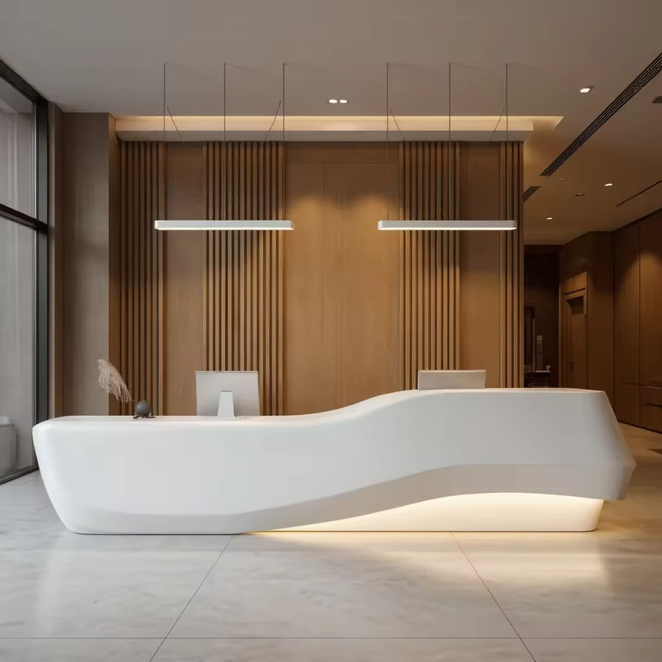 Mostrador de Recepción Moderno de Forma Orgánica en Color Blanco, Diseño Elegante para Oficinas de Alta Gama