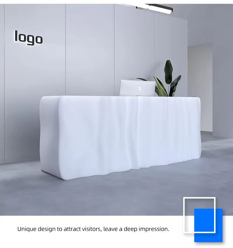 Mostrador de Recepción Moderno Blanco con Iluminación LED, Diseño en Forma de Concha para Uso Comercial