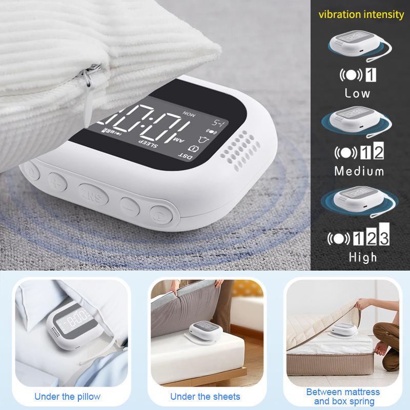 Pantalla de 12/24 horas + alarma con vibrador + batería recargable