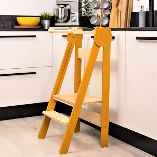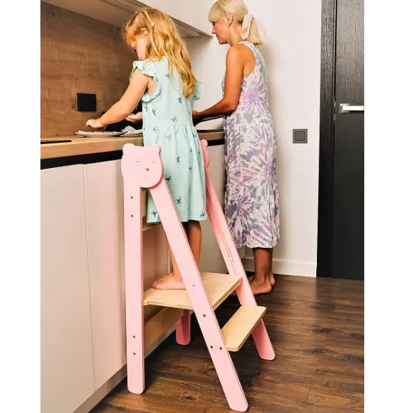 Escalera de madera moderna para niños pequeños, torre de aprendizaje con tablero de dibujo de bloques de construcción para baño y cocina