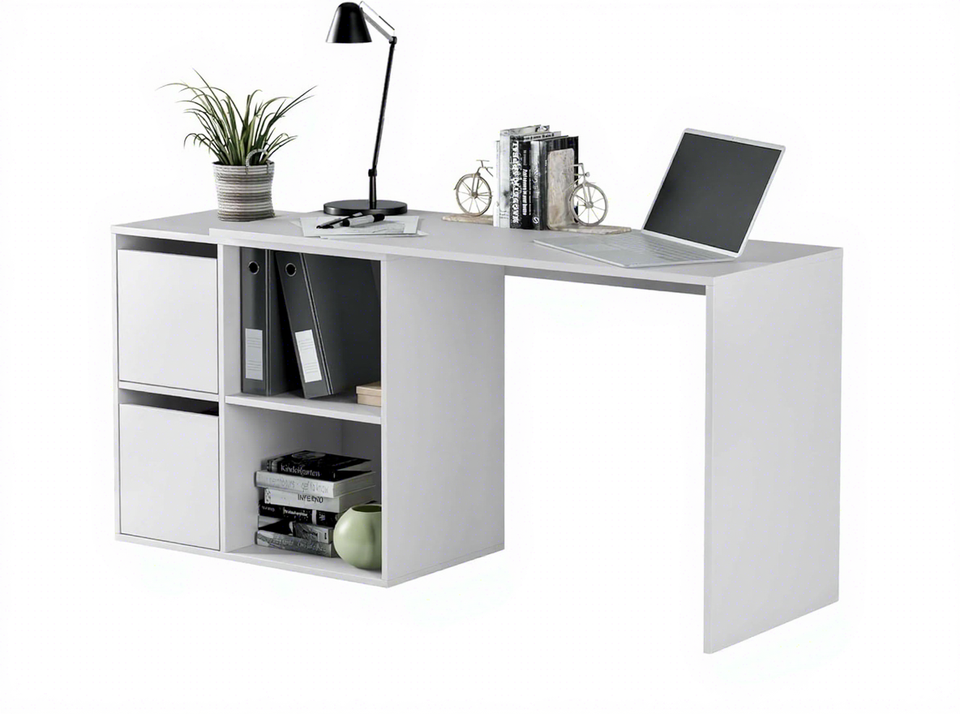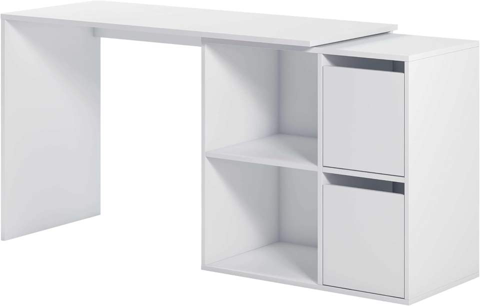Escritorio Moderno de Madera Reversible Multiposición Modelo Adapta Artik con Acabado Blanco y Estantería para Computadora