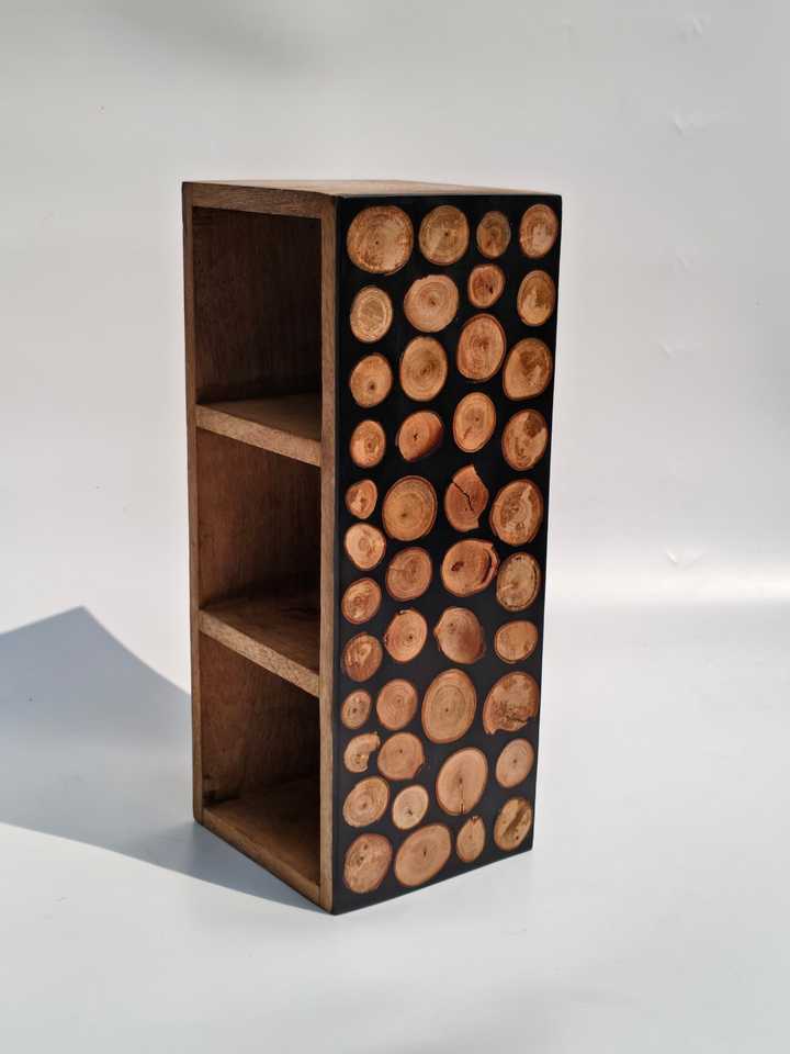 Organizador de Cubiertos de Madera Hecho a Mano con Incrustaciones de Rodajas de Madera Modernas, Porta Utensilios con Múltiples Compartimentos, Caja de Almacenamiento para Mesa de Cocina