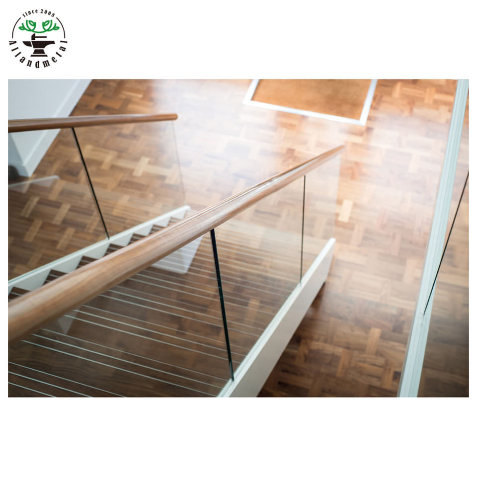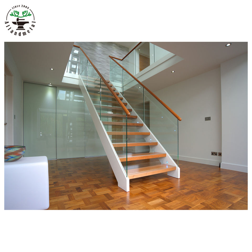 Escalera Moderna de Madera con Barandilla de Vidrio, Escalera Interior Flotante Recta para Villa, Pasamanos de Madera en Forma de U con Peldaños