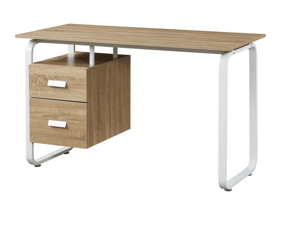 Escritorio moderno de madera para ordenador con dos cajones y Marco de metal blanco para sala de estudio de oficina en casa
