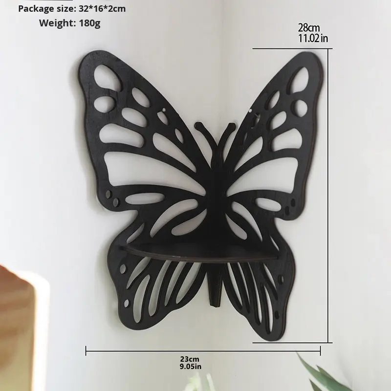 Estante de almacenamiento de mariposa artesanal de madera moderno para decoración de pared del hogar para sala de estar cristal hueco Simple