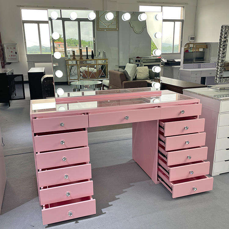 Tocador Moderno de Madera con Cajones, Luces LED y Espejo de Maquillaje de Cristal