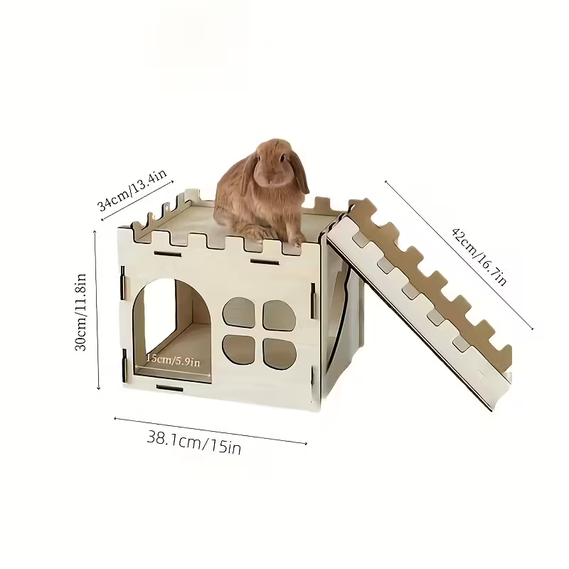 Material de madera: La construcción de madera asegura un entorno natural y ecológico para las mascotas, proporcionando durabilidad y facilidad de mantenimiento.