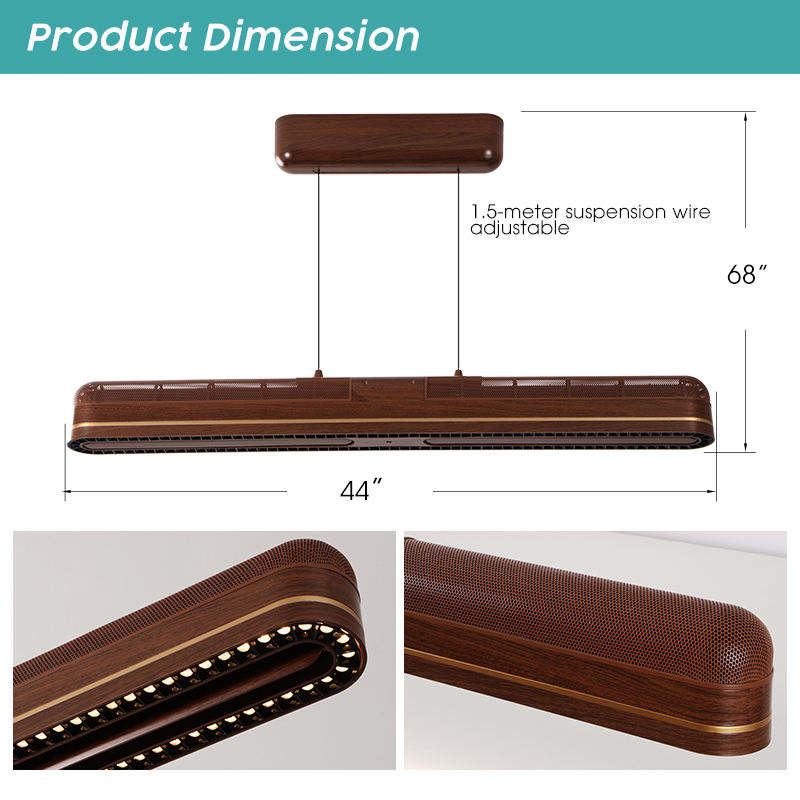 Lámpara Colgante LED Lineal de Madera Moderna, Ajustable, para Comedor, Cocina, Sala de Estar