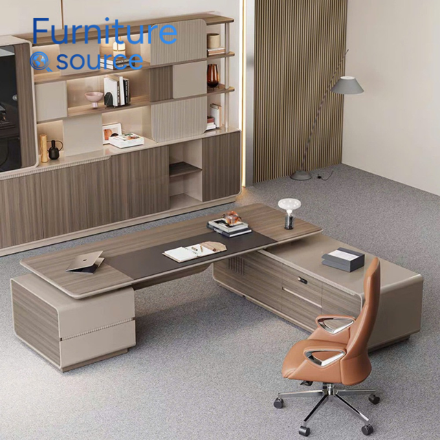 Escritorio de oficina con panel de madera moderno, acabado fuerte de melamina MDF, espacio de trabajo diario asequible, fabricante experto de Vietnam