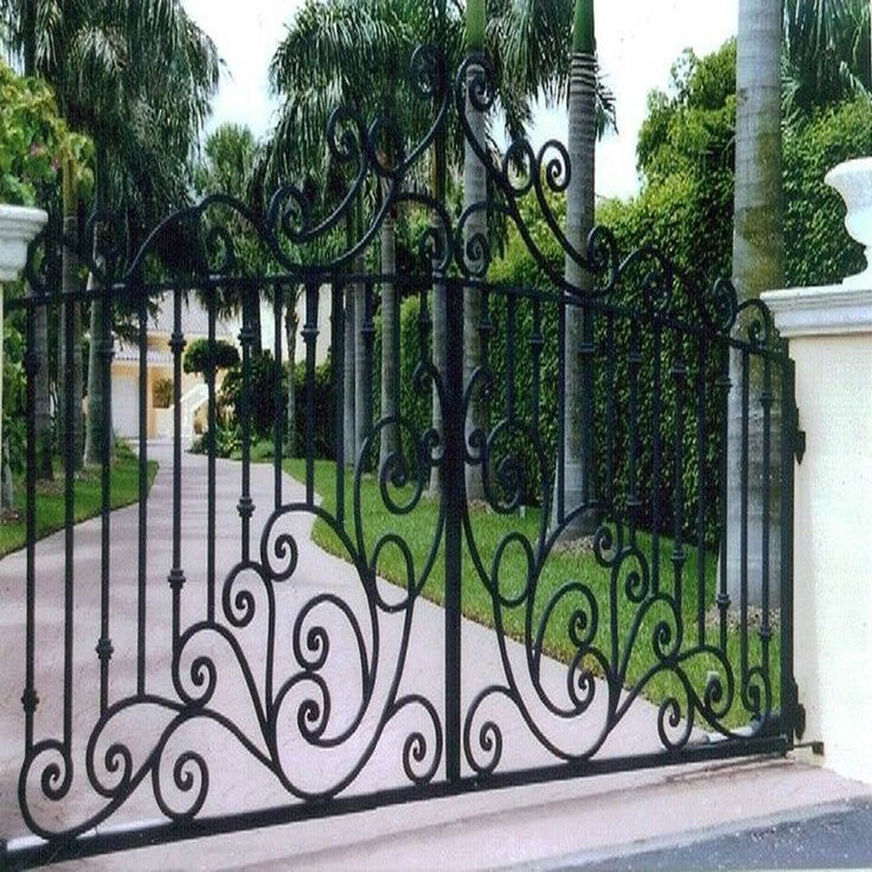 Puerta de jardín de hierro forjado moderna con diseño de volutas decorativas para la entrada de la casa Fabricante de Vietnam Servicio de modelado 3D