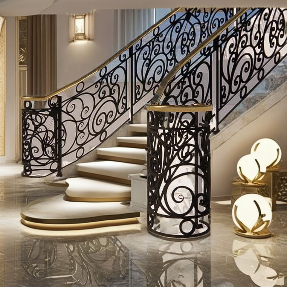 Barandilla de Escalera Moderna de Hierro Forjado, Diseño Personalizado, Balaustres Decorativos de Hierro Negro Forjado a Mano para Escaleras Interiores Elegantes