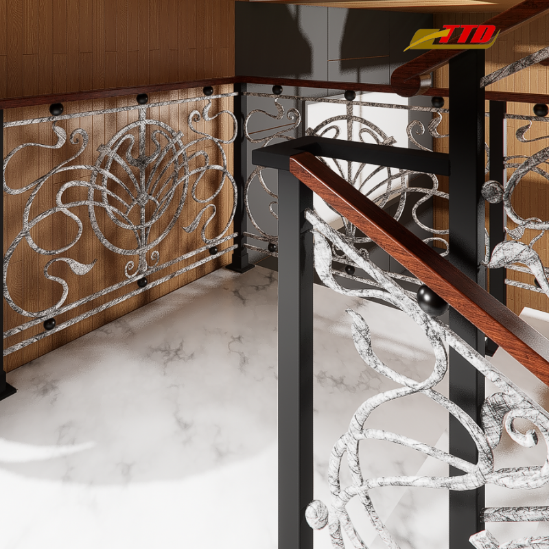 Barandilla de Escalera Moderna de Hierro Forjado con Balaustres Decorativos de Hierro – Pasamanos de Hierro Negro Personalizado para Interiores, para Escaleras Interiores Elegantes