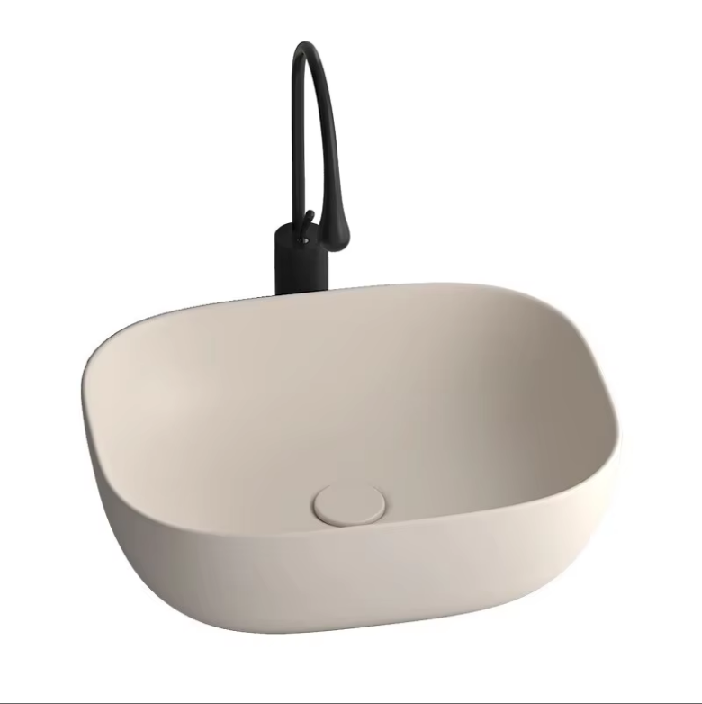 Lavabo de Piedra Moderno y Sencillo con Acabado Mate, Forma Ovalada, para Baño, Balcón y Lavadero