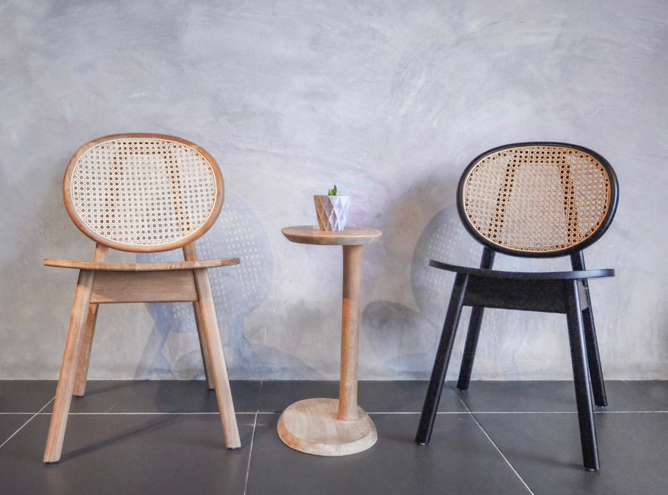 Asientos de café modernos silla de madera negra maciza respaldo de ratán ovalado marco minimalista estética escandinava Hotel Villa restaurante