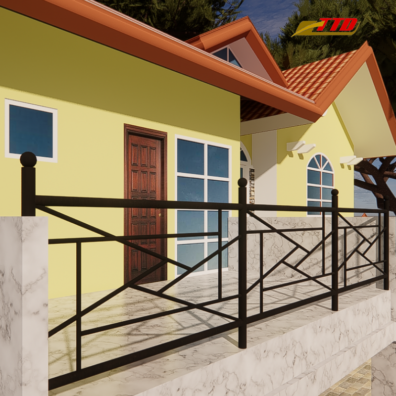 Barandilla moderna de hierro forjado para exteriores, barandilla con elegante balaustres verticales, superficie con recubrimiento de polvo para uso residencial y comercial