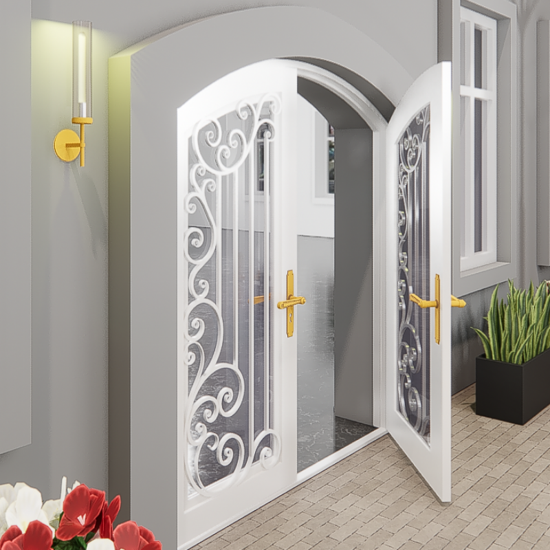 Diseño moderno de puerta principal de hierro para Villa o casa residencial puerta de entrada de metal con cerradura inteligente opcional y acabado personalizado