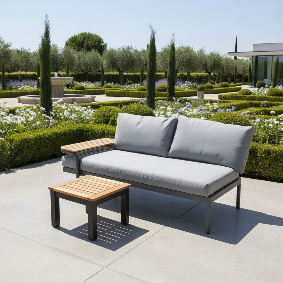 Acacia wood frame Polyester cushion cover with foam filling.Material
