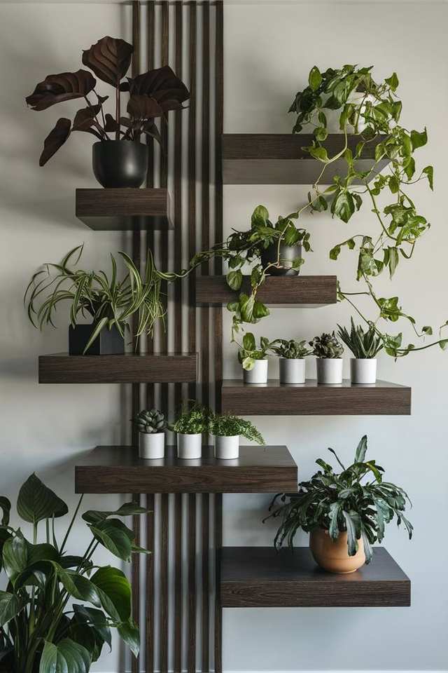 Estante para colgar en la pared de madera natural moderno, estante para el hogar, soporte para flores para pared y decoración del hogar