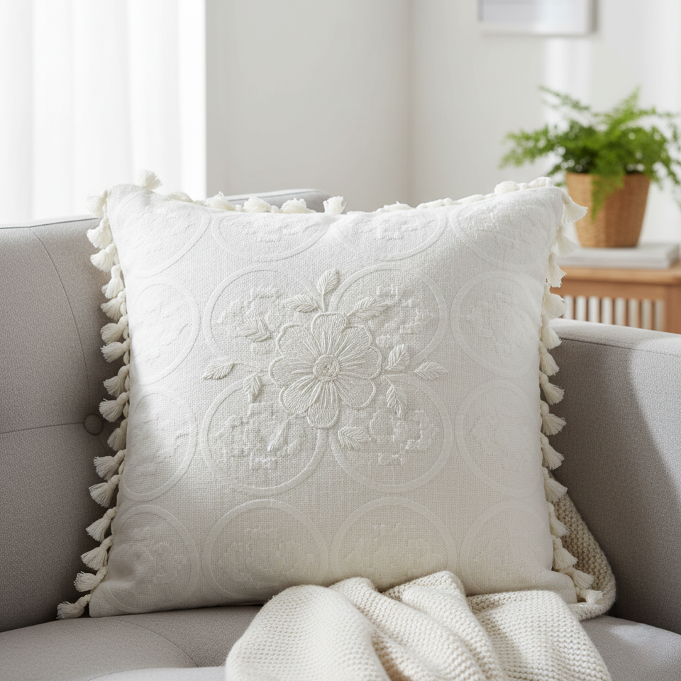 Cojín Moderno Ecológico YERCAUD, Relleno de Fibra Hueca, 16x16, Tejido No Tejido Duradero, Diseño Sólido, 350 GRM, para Hogar y Hotel
