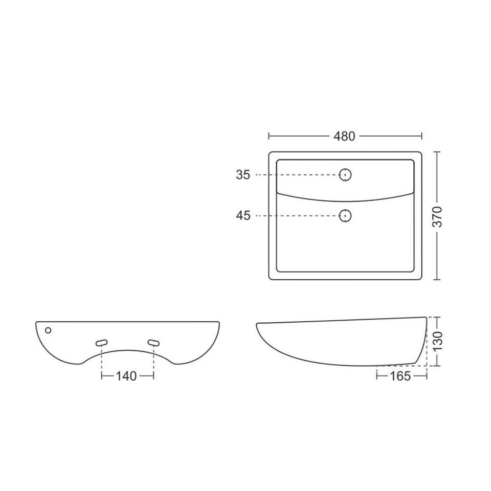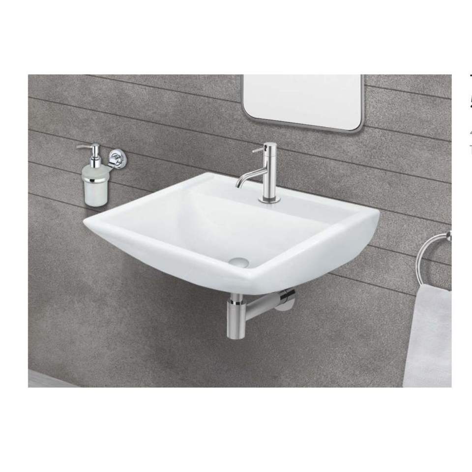 Lavabo cerámico rectangular moderno para colgar en la pared, 480x370x130mm, blanco brillante, con medio pedestal.