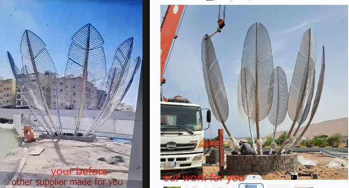 Estatua de jardín de plumas grandes de acero inoxidable cuadrada moderna Kindred Spirits monumento paisaje iluminación LED escultura de parque al aire libre