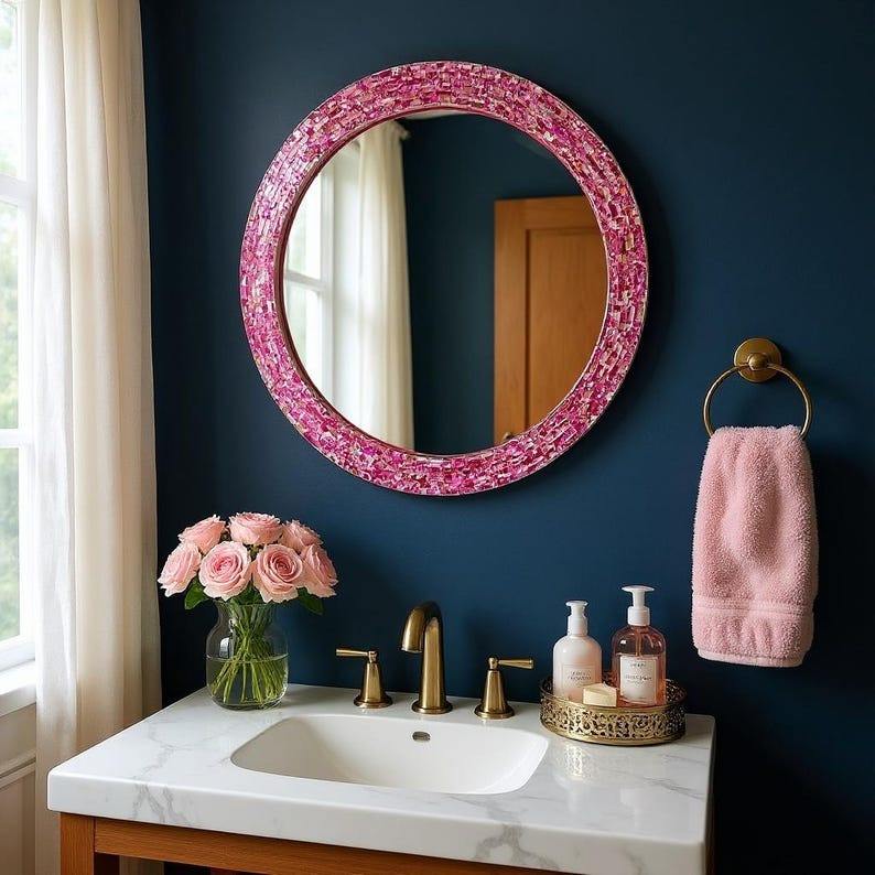 Espejos de Pared Modernos para Hogar, Hotel, Baño, Color Azul Cielo, Espejos de Pared de Mosaico, Espejos Redondos Modernos para Montar en la Pared, Los Mejores Espejos de Pared