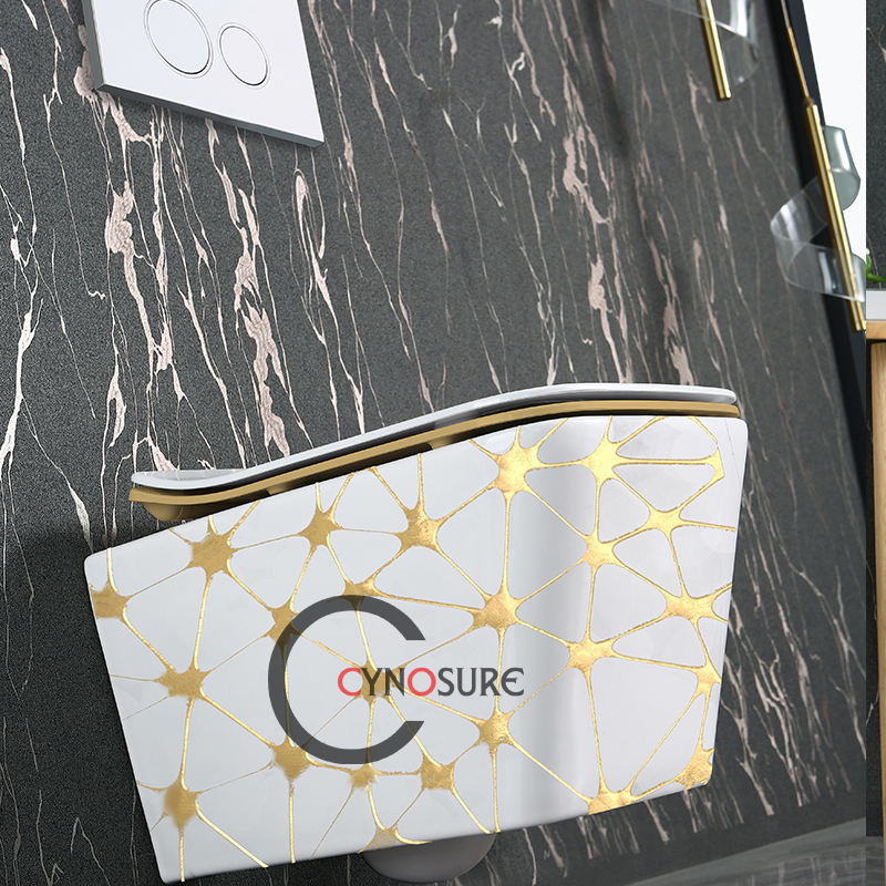 Inodoro de cerámica de una pieza de mármol dorado blanco moderno con lavabo, juego de armario de agua para uso doméstico