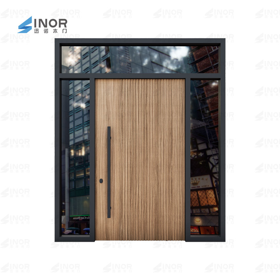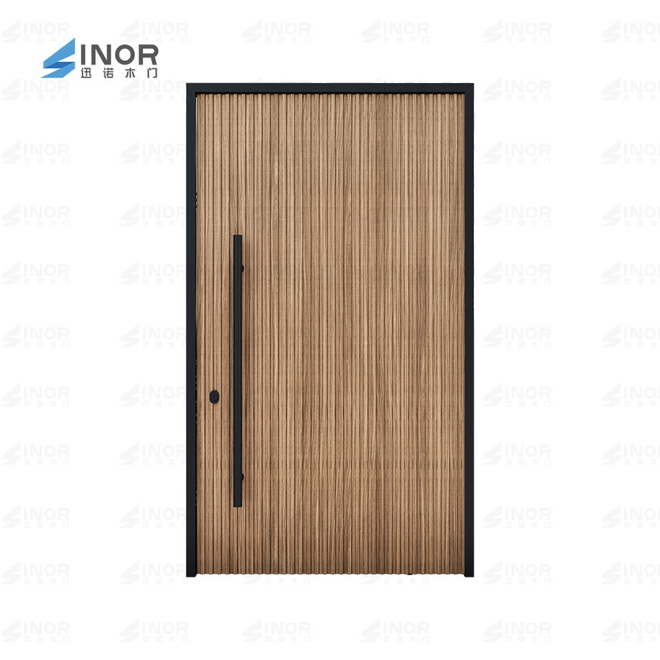 Puerta Pivotante Moderna de Madera Contrachapada Impermeable con Diseño Minimalista para Uso Exterior y en Interiores