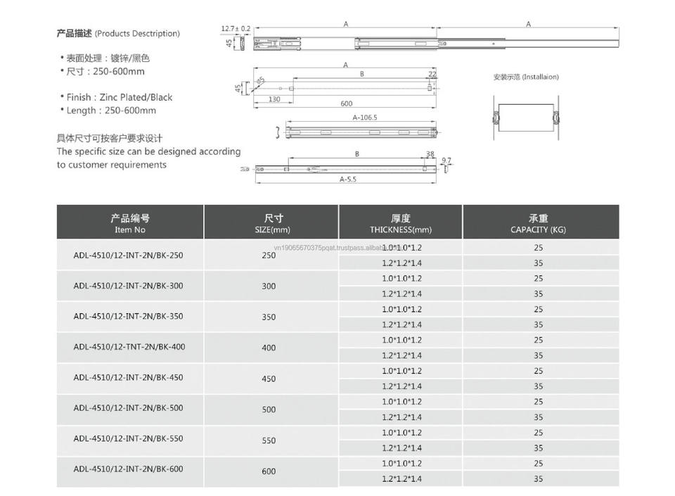 250-600mm/8-23"Longitud