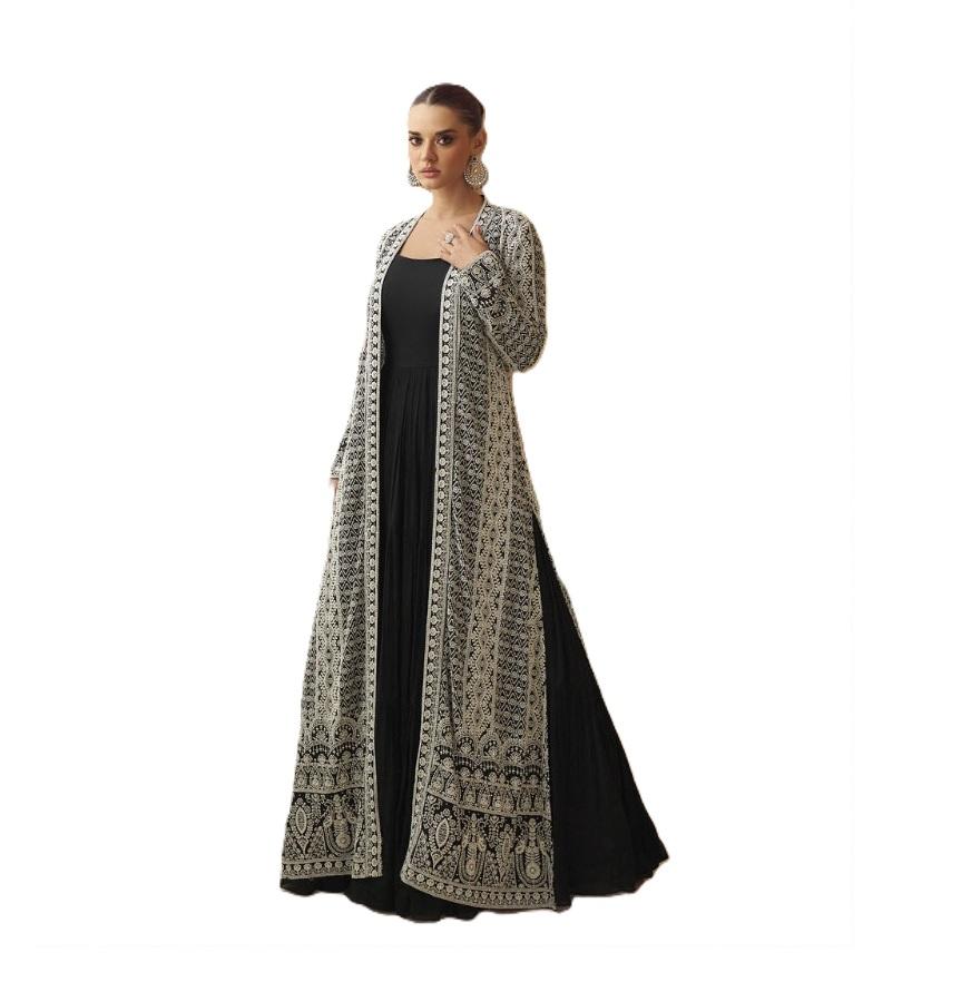 Vestido de Fiesta Largo para Mujer, Estilo Modesto con Bordado, Poliéster Chinon, Mangas Largas, Estilo Árabe de Lujo, Abaya