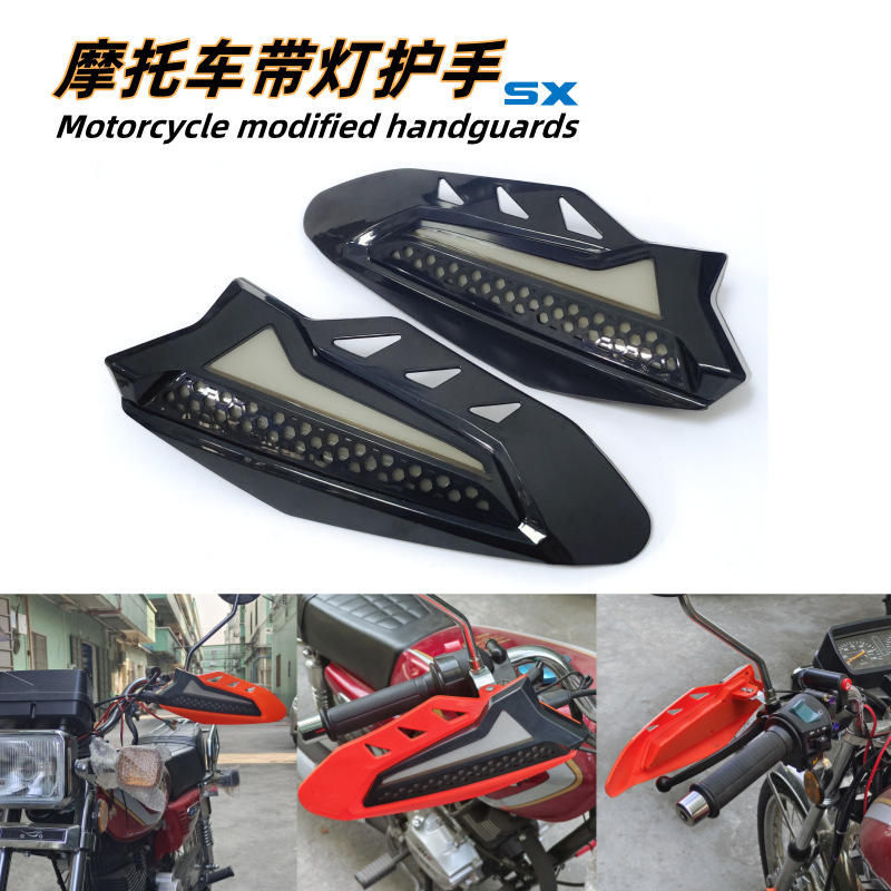 Protectores de Manos Modificados con Luces Rojas y Negras, de Plástico Impermeable, para Manillar de Motocicleta, Accesorios de 34 cm y 21 cm, SX-154