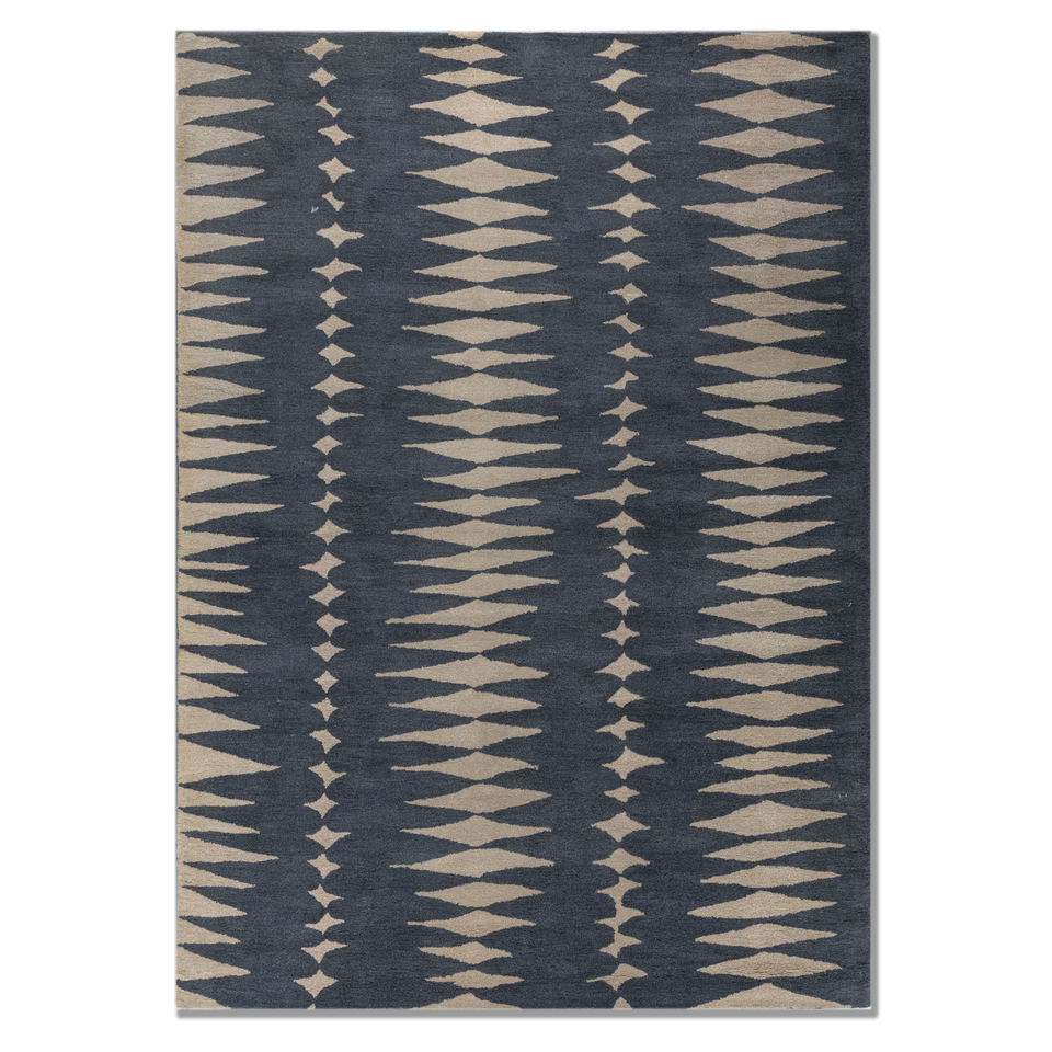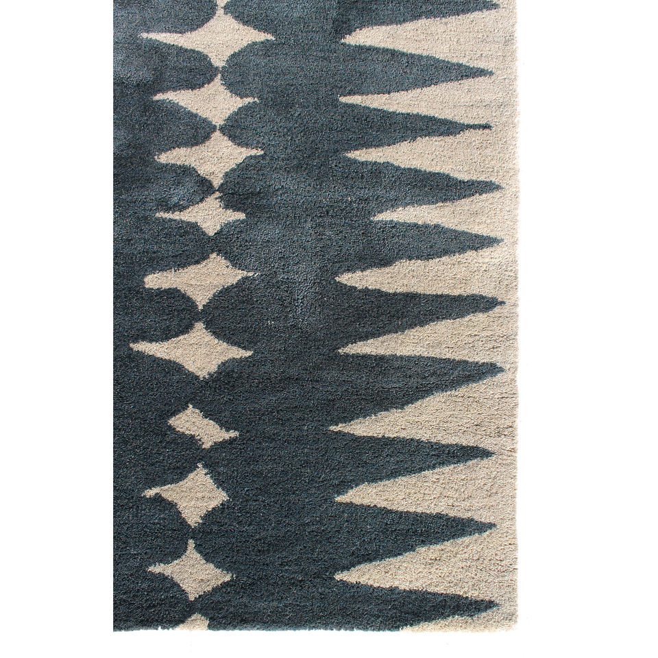 Alfombra Rectangular de Lana Hecha a Mano Modo Blue con Patrón Geométrico, 9x12, para Sala de Estar, Entrada o Dormitorio
