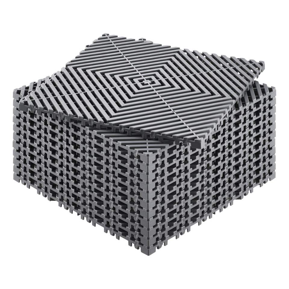Alfombra Modular de Drenaje Entrelazada 12x12, Antideslizante, de Plástico PP Gris, 12 Piezas, Cojín de Empalme Antideslizante, Piso de PP Gris