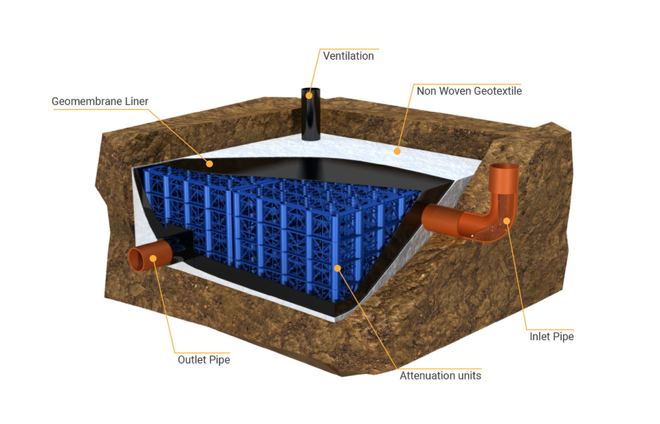 Tanques De Almacenamiento De Agua Subterránea De Atenuación Modular Sistemas De Soakaway De Plástico Ciudades Esponja Infiltración De Aguas Pluviales
