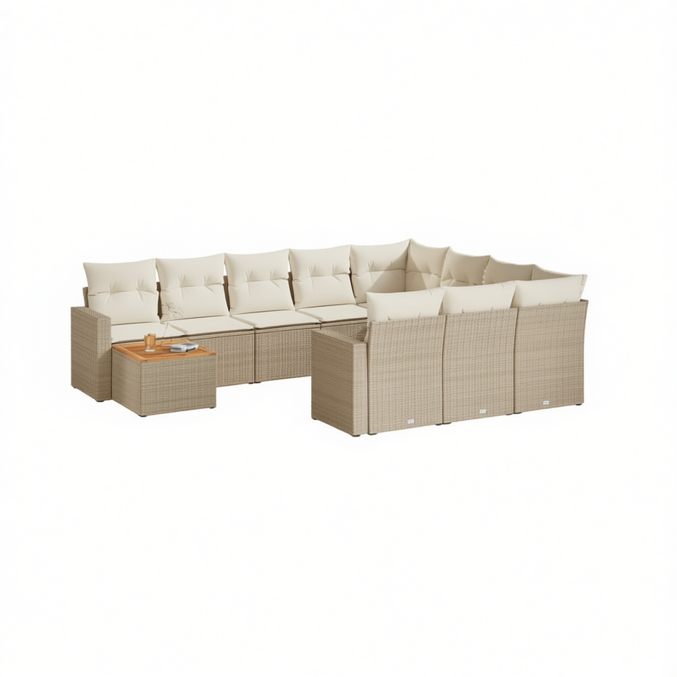 Conjunto de Sofás Modulares de Ratán Sintético PE Beige para Jardín, Muebles de Exterior para 6 Personas, Diseño Contemporáneo