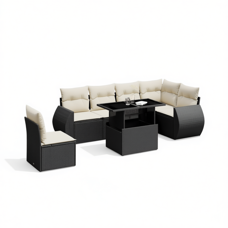 Conjunto de Sofás Modulares de Ratán Negro para Jardín, Muebles Elegantes para Exteriores con Cojines de Espuma de Alta Densidad para Patio